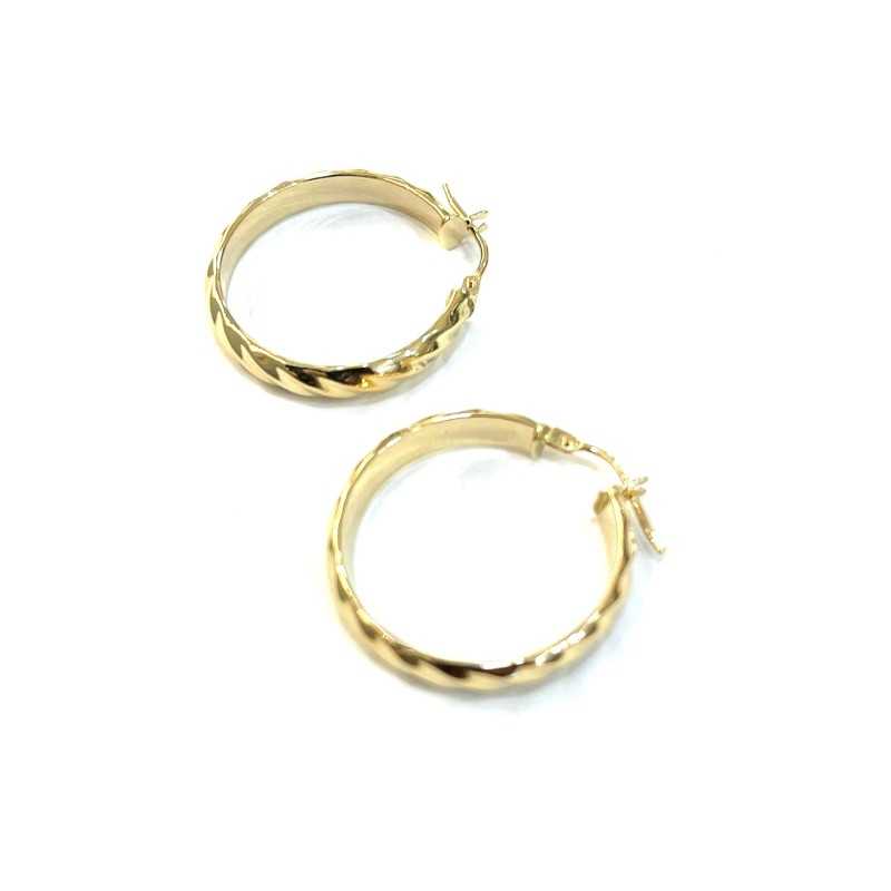 Argollas oro 18k con dibujo gañón peso 1.85 gramos medidas ancho 4mm diametro 25mm