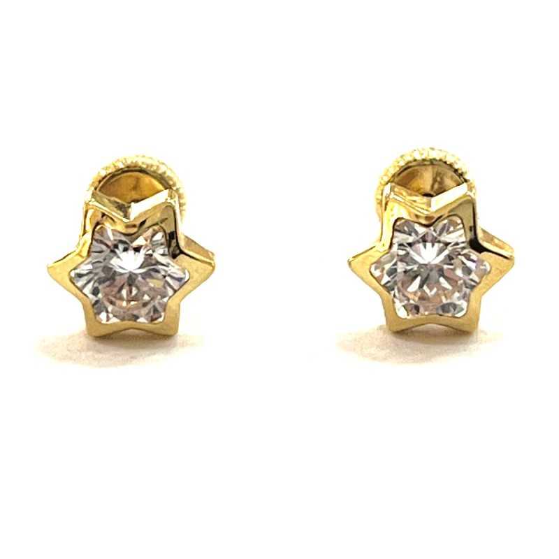 Pendientes Estrellas .Oro 18K-circonitas tamaño 6.5mm cierre rosca.
